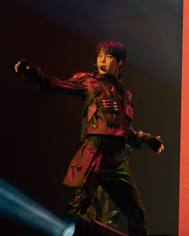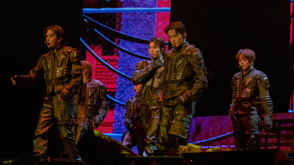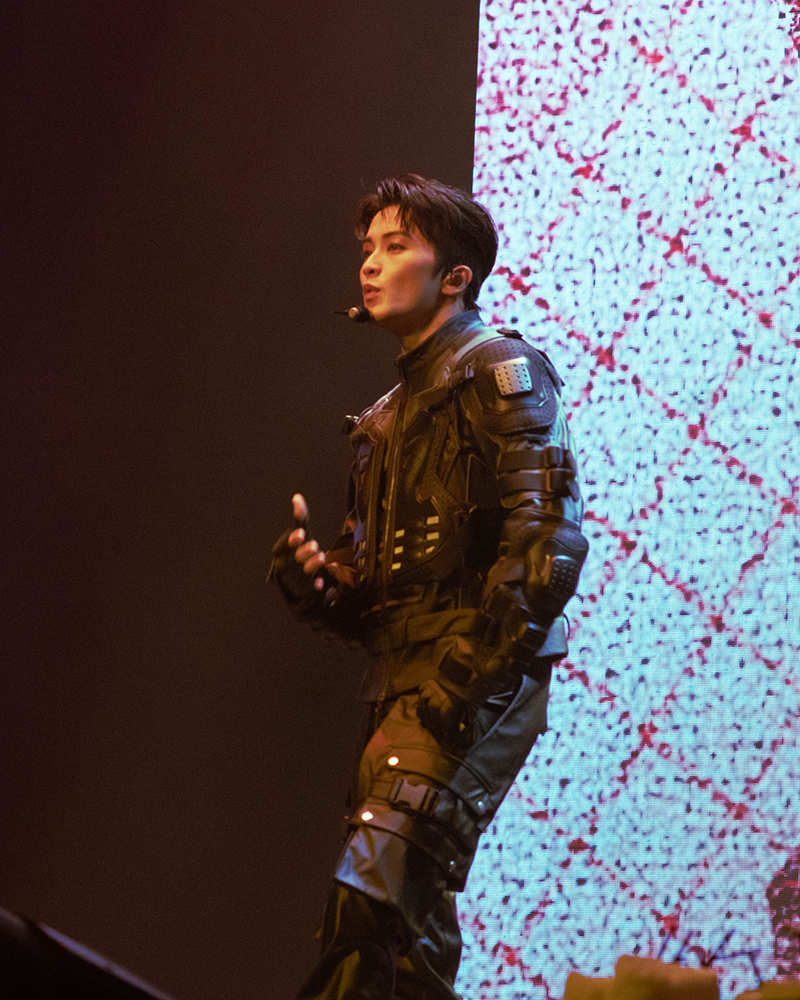 NCT 127 came out swinging this tour, starting off with hard-hitting songs like “Gas” and “Bring The Noize” to remind people that they still had that “neo” power regardless of how many of them were present. A lot of choices for the setlist were fan favorite bangers such as “Regular”, “Skyscraper”, and their most recent title track “Walk”. Not every performance was nonstop action, though. Use of props added an interesting element to the live versions of some of their b-sides. “Designer” came complete with clothing racks, measuring tape, various jackets and coats, and the opportunity for funnier interactions on stage. Later on, the umbrellas they sported during the ending of “Rain Drop” were incorporated into the final seconds of the choreography to create more drama in the atmosphere.